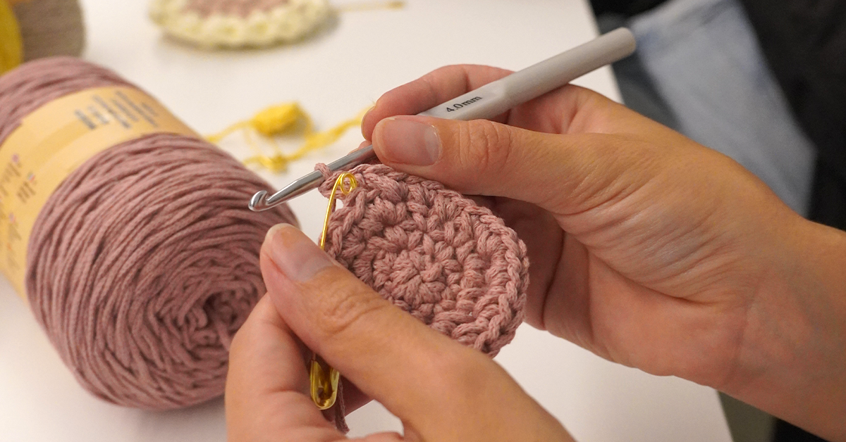 In the Crochet Workshop led by our Gamer Maria Duarte, participants created autumn-inspired coasters and candle covers. These pieces, in addition to their practical utility, carried a clear message: breaks can also be productive moments.